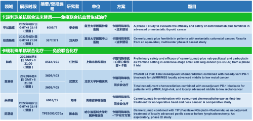 卡瑞利珠单抗联合AG官网医药的另一款创新药法米替尼在甲状腺癌和结直肠癌领域有2项研究被接收为壁报,另有卡瑞利珠单抗联合化疗的4项研究在肺癌、结直肠癌、头颈癌和阴茎癌领域的研究被接收为5份壁报。